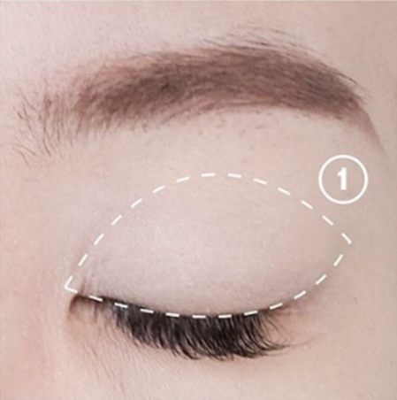 Step1 首先妹子们吗取一肤色眼影,涂抹在整个上眼皮,作为眼皮打底。