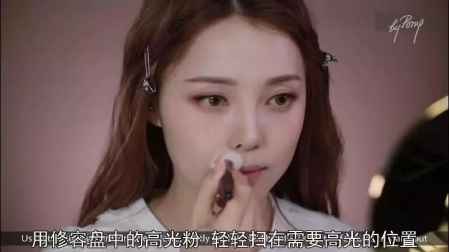 用修容盘中的高光粉,轻轻扫在需要高光的位置。