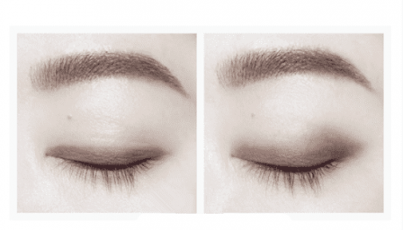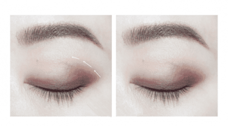 Step3 再取一金铜色眼影,画在上眼皮的前2/3,注意范围以超出双眼皮眼褶的1.5-2倍即可。