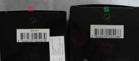 3、再看下面这个底部的,在外包装,柜台买的(左),条纹码有清楚的日期批号,假货(右)则没有。