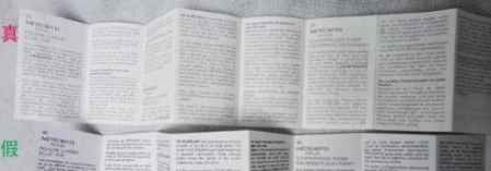 6、看印刷的说明书。上是专柜货内带的说明书,字体清晰,页面微黄,下是假货带的说明,首先裁切不整齐,字体印刷粗糙,字体发黑。长度也不一样,专柜的比假货的略长。