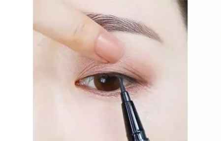 Step 3:以眼线液笔画内眼线,可以用棕色的眼线笔会更自然,注意这里不拉长眼尾。