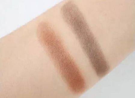 左边是金棕色,右边是有点玫瑰色偏光的红棕色,很日常的盘子,比起日常的大地色来说,偏红的眼影盘,会在日常的同时,更加柔和,也不容易衬得皮肤暗沉。