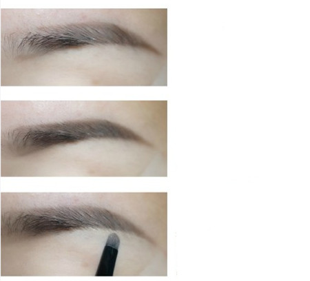 第二步:用浅色的眉粉填充中间,用深色的填充眉头。之后用眉梳梳一下柔和边缘。