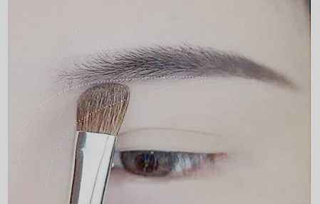 step 2:用鼻影刷沾取一个比较自然的阴影色,晕染眉头和眉毛前半截的下方,这样可以使眉骨更立体,眼睛更深邃。