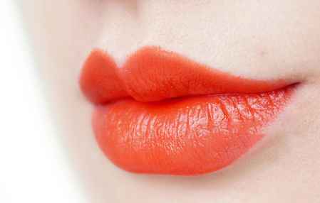 橘色,红调不浓郁基本都在唇线色部分,主色是亮丽的橘。因为唇线色的质地与主色不同,更shine所以双色效果不明显,心机丰唇,不显黄。