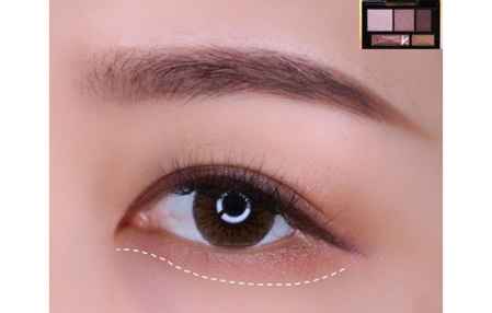 第三步:用细节刷沾取棕色眼影沿着睫毛根部画一条眼线,如图所示。