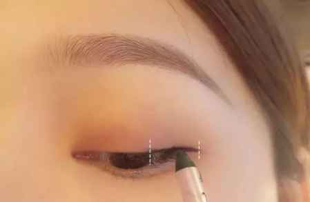用手将眼皮往上撑开,然后用眼线笔从眼睛二分之一处往眼尾处画,不要延长也不要加粗,就简简单单的画一条半尾眼线,妆感会特别清新。