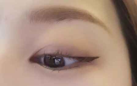 如果不涂眼影,光画眼线的话,其实效果还蛮呆板、生硬的,不信你看下图↓