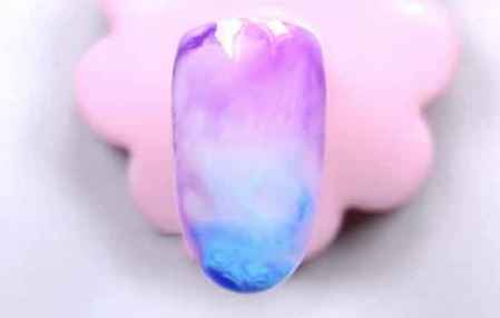 用同样的方法,把蓝色、深蓝色甲油胶分别与封层调匀后在甲面上拉出颜色并晕染开,照干。