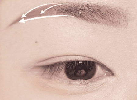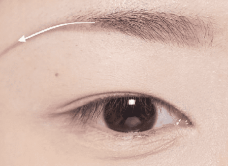 第一步:选择一只灰棕色的眉笔,找到**眉弓骨,沿着它的线条,画出一条很自然的曲线,形状弯曲且柔美。