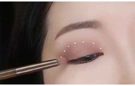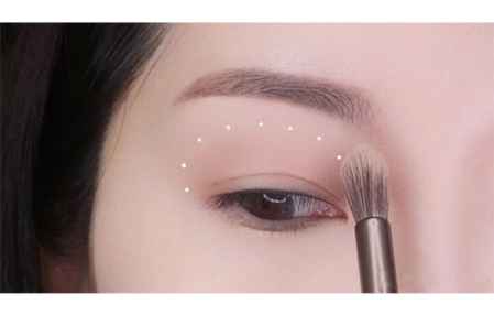 第一步:用一把大刷子沾取一个浅色哑光打底色眼影大面积在上眼皮打底。