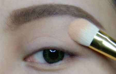 3、用最浅色号的眼影给上眼皮进行打底,晕染整个上眼皮。