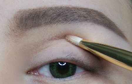 4、用刷子沾取与第三步同色号的眼影,晕染在眉骨处,这样做的作用是提亮眉骨。