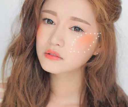 鹅蛋脸算是最完美的脸型,腮红画起来也比较简单,从苹果肌开始以打圆的方式横向往太阳穴刷,增加红润感即可。