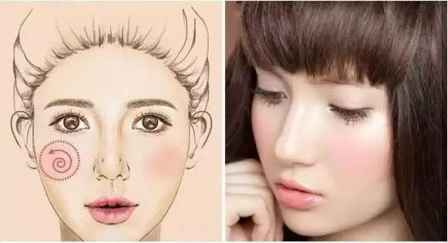 圆圆的脸蛋虽然**,可是也显胖啊!所以圆脸的宝宝们画腮红时,使用腮红刷沿着颧骨向发际线两侧轻刷,这种画法可以起到拉长脸型的效果。