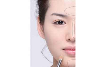 第三步:接着对额头、鼻梁和下巴进行提亮,使面部更加立体。