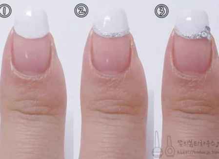 STEP3:在法式的边缘,用银色笔勾出线条,再粘上2-3粒小亮钻。