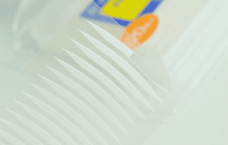 第二步:再用自带的叉子沾到胶带两端,这样胶条就顺利取下了。其实没有太大的技巧,只要保证手不碰到胶条,怎么取都可以。