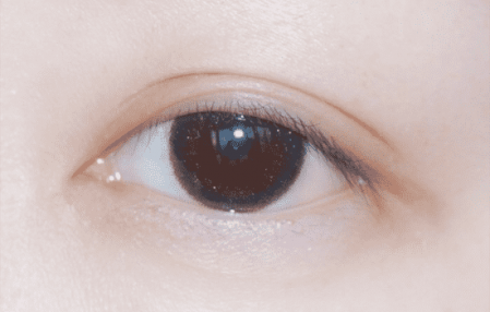 第四步:固定好位置后自然睁眼,这个黏度很大,睁开眼就基本已经固定住了,可以不用再去**压。半闭眼的时候折线很明显,但胶条绝对看不见!