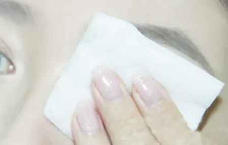 第二步:15秒后,横向朝外擦去眼妆,一次就能使大约70%的眼影和睫毛膏能脱落,注意一定要是横向擦去,因为这样会眼部肌肤的拉扯最小。
