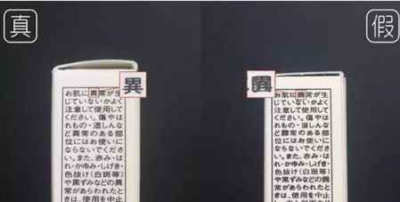 外包装盒的侧面说明处,错字很多,就这个異字来说,这一页上面有几个異字,正品的字体笔画清晰,而假货则是密密麻麻,说明假货印刷有问题,太密麻的字可能印不出来。