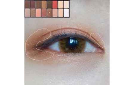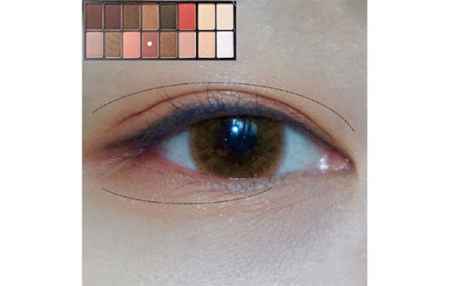 第二步:用中号眼影刷沾取枫叶色眼影画在比双眼皮褶皱略宽的范围内,顺带扫一下下眼尾。