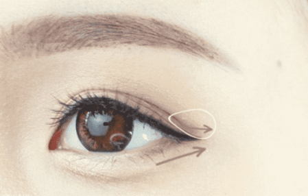 第五步:最好带上自然款的假睫毛,再刷一遍真假睫毛合在一起,接着用眼线液笔画眼线,眼尾最后平拉出一点就可以。用3号色深色眼影晕染眼尾小三角区,并画下眼影的后三分之一,注意要衔接上眼线,保持过渡自然。