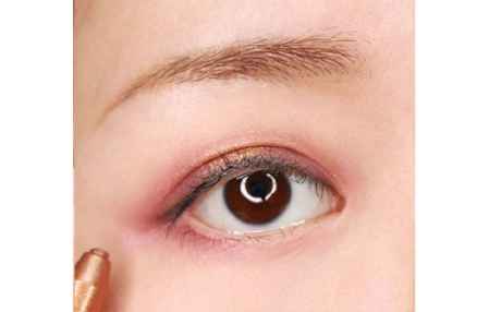 第三步:用一个金色眼影提亮眼中,使眼妆更有立体感。