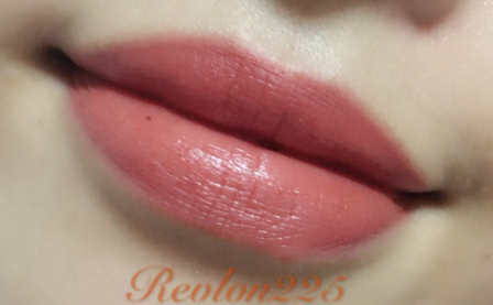 ❄露华浓225:膏体本身是偏红豆沙色,上唇更偏橘色,有点淡橘豆沙色。质地丝滑,没有香味。