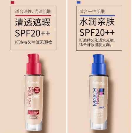 红瓶适合油性,混油,混干肌肤,控油持久性比较好,持久25小时不脱妆,干皮也能用。