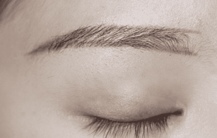 第三步:接着用眉笔或者眉粉,填充眉毛之间的空隙,需注意的是眉头的地方下手轻。