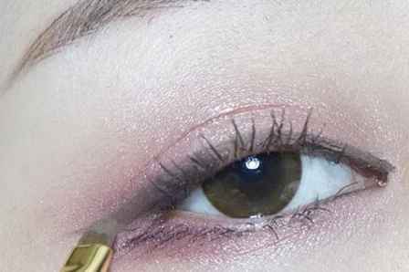 第四步:取哑光裸粉色眼影晕染在眼皮前半部分,下眼睑也不要忘记哦。