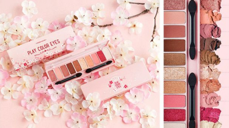 这盘眼影外观的整体设计呈现出春天的粉嫩气息,包括雾面、珠光、亮片色组合,可以不须思考配色就打造出粉红樱花系眼妆;但这盘眼影质地偏软,显色度中等,需要重复晕染才显色,不过如果是彩妆新手使用这盘也较不容易失手