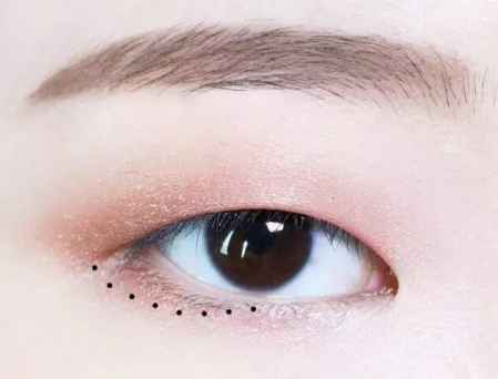 STEP4:用小号的眼影刷蘸取粉色的眼影在下眼睑晕染。
