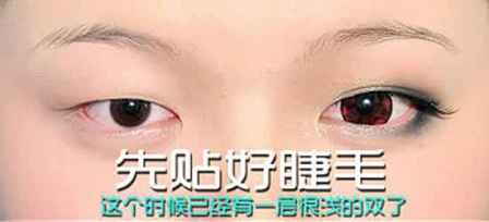 步骤三:先贴好睫毛,这个时候已经有一层很浅的双了。