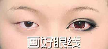 步骤五:画好眼线。画的时候,沿着睫毛根部画。没有填补完全没关系,后面可以用黑色眼影加以修补。
