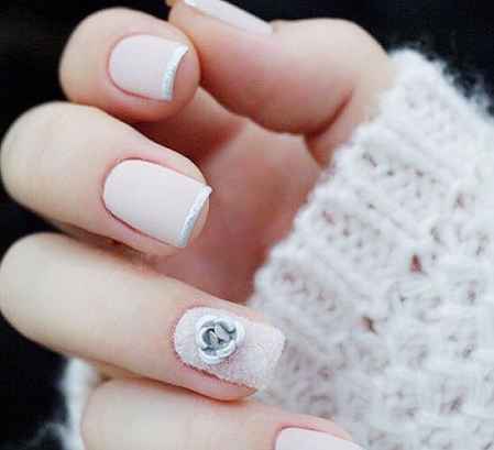 丝绒美甲虽说大部分偏成熟优雅风格,但这款美甲就很清纯啦!白色一般都比较清纯简单,银色玫瑰点缀在指甲**更显清纯哦~想要清新自然效果的MM可以做这款美甲!