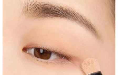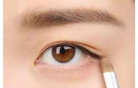第三步:在上眼睑眼皮褶皱位置涂上淡淡的橘咖色眼影。