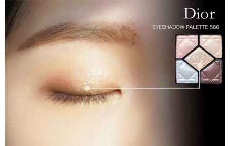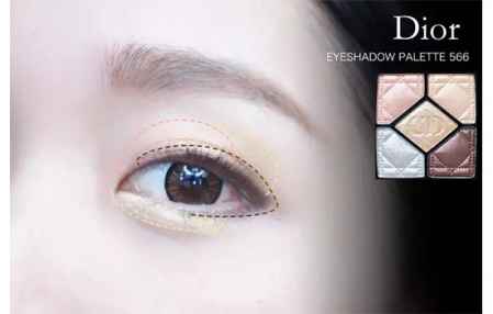 第二步:用指腹沾取最闪的金色点涂在上眼皮中间。