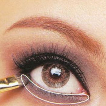 步骤三:用深棕色的眼影来扫在双眼皮还有眼尾这一小块区域上面。