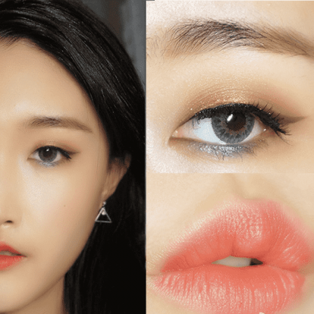 这款猫眼妆的亮点便在于蓝色的下眼影,让眼睛看起来更大又神秘,棕色眼线来画猫眼眼线比黑色更温柔,这也是韩式猫眼妆的一个特点。