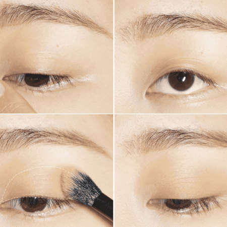 第一步:首先选择最浅的肤色眼影,找到最适合自己的眼影轮廓,将眼部进行整个打底。
