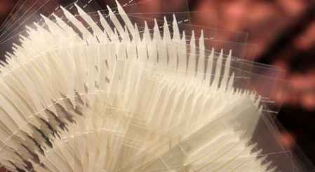 第四步。2分钟后,胶水干后转为半透明,用叉子轻压摺痕,再慢慢张开眼睛。