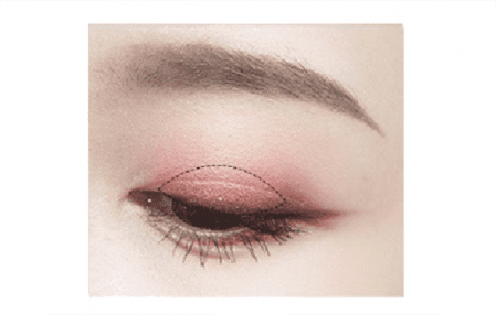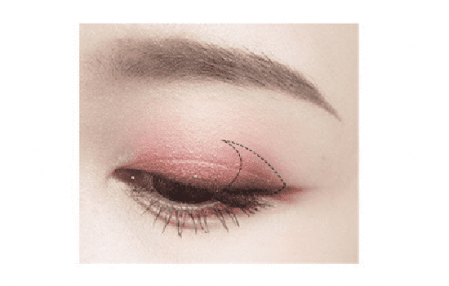 Step2 接下来取玛丽黛佳网红九宫格眼影第一排的第三个眼影,画在上眼皮超过双眼皮褶皱一点处。