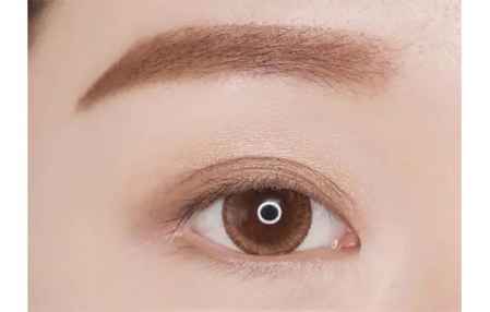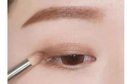 第二步:接着用锥形眼影刷沾取深棕色珠光眼影,然后将眼影在双眼皮褶皱内晕染。