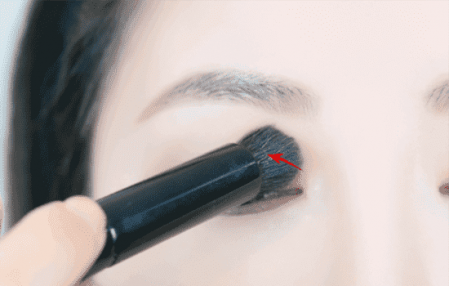第二步:接着用眼尾位置滑向内眼角眼窝,此时刷子上已经没有太多眼影粉,所以可以在内眼窝反复涂抹让颜色更加均匀,这边的眼窝会明显感觉到深邃,鼻子高挺可又不着痕迹。
