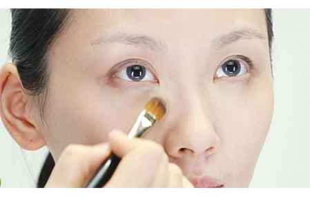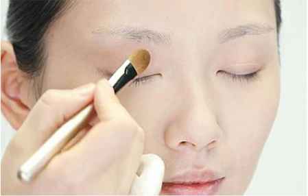 先用浅色的眼影在整个眼皮打底,稍稍的晕染一下眼窝。