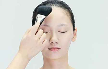 由于经常戴眼镜,所以眼下的肤色可能会不均匀,鼻梁两侧也会有眼睛印,所以第一步先遮瑕,用刷子在印记深的地方进行着重覆盖。