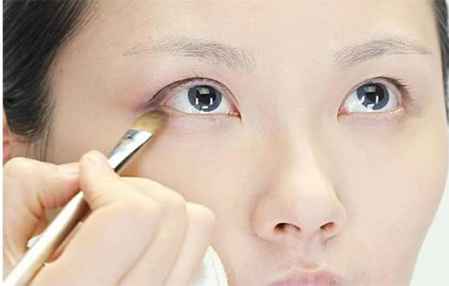 然后用棕色的眼影在眼睛的后二分之一吃和下眼尾,由后往前晕染,加重阴影感,最后画一条棕色的眼线,棕色的眼线会比黑色的更自然。